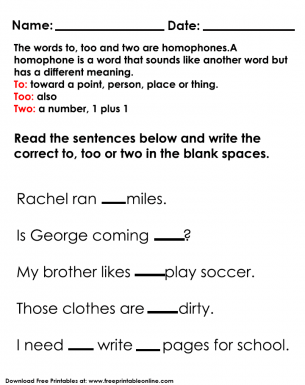 To Two Too Worksheet : Homophone Worksheets -. Conversions require only basic math, but they're very useful calculations to know how to do: Finding free printable worksheets is an excellent way for teachers and homeschooling parents to save on their budgets. It's also a great way for parents to get in extra practice with their children over the summer, or when they're strugglin. Even in an era of convenient online calculators, being able to do. This step by step process will help you create an alternative generations worksheet, save it and print it.